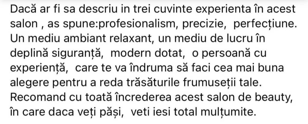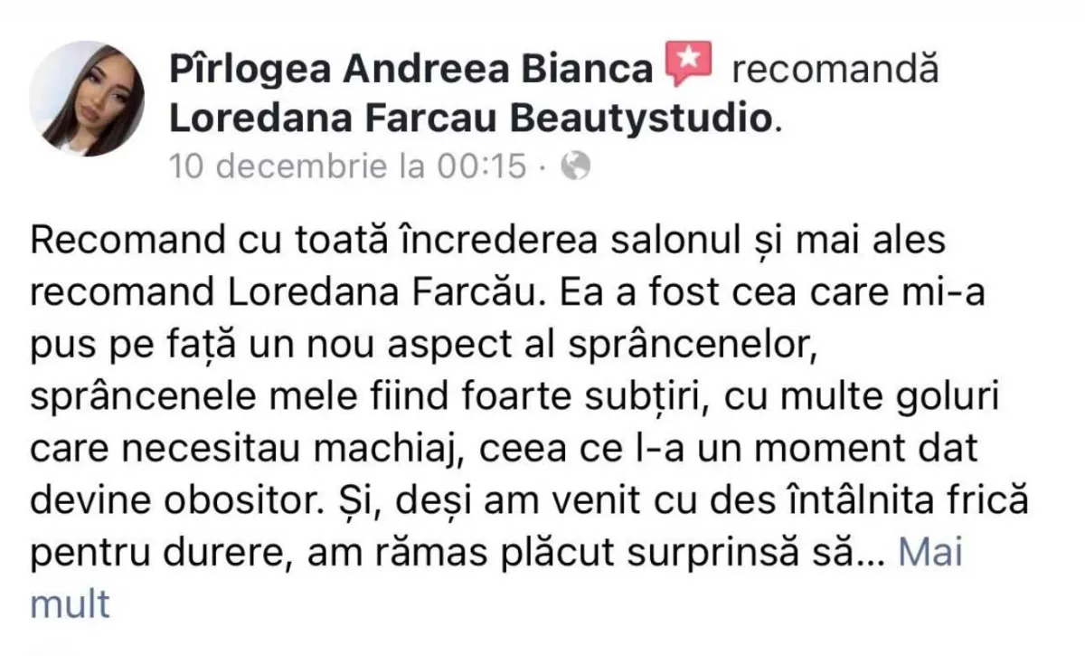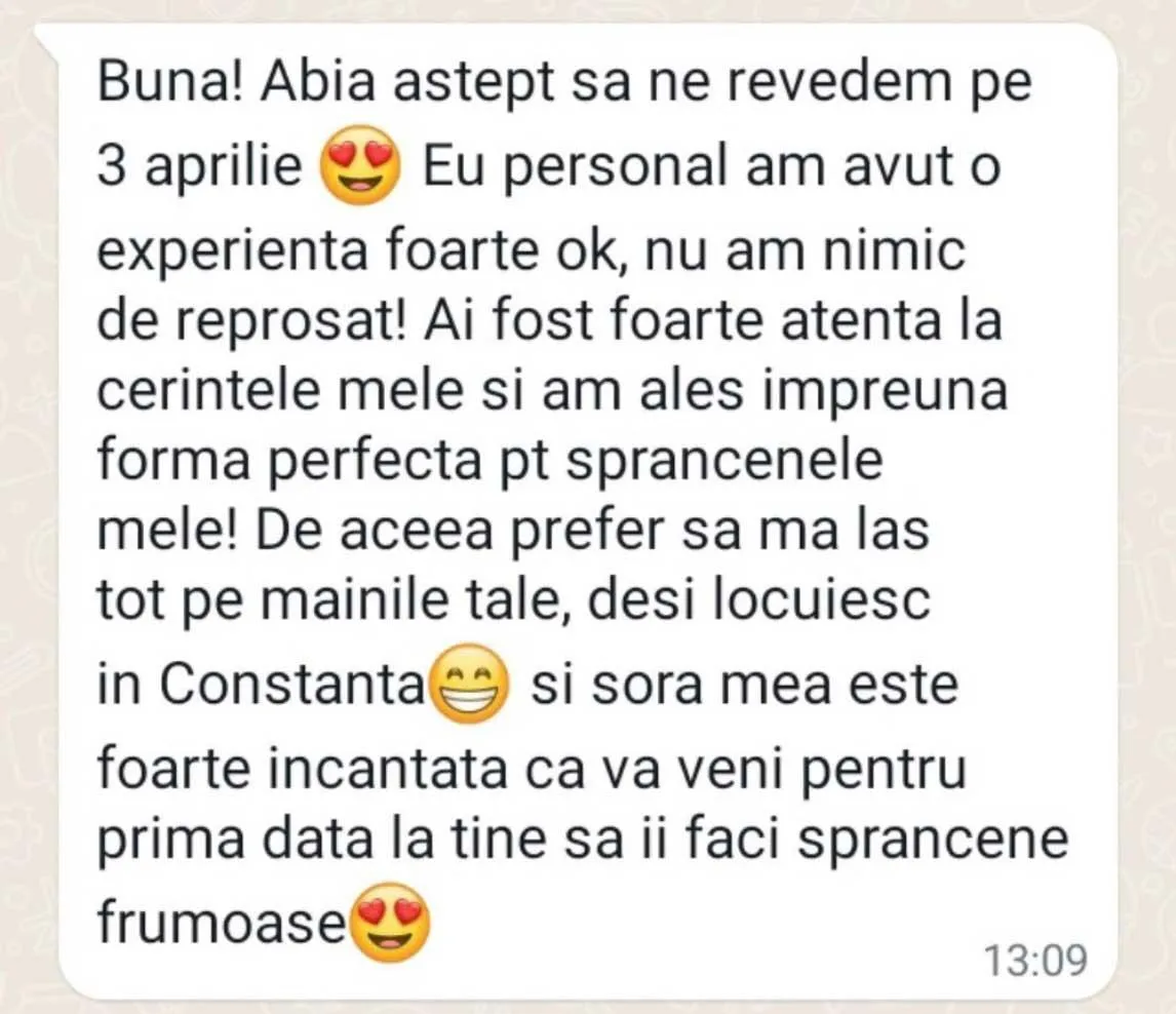 Pe lângă machiajul permanent al sprâncenelor şi buzelor sale, Ioana a apreciat atmosfera primitoare şi experienţa personalizată.
